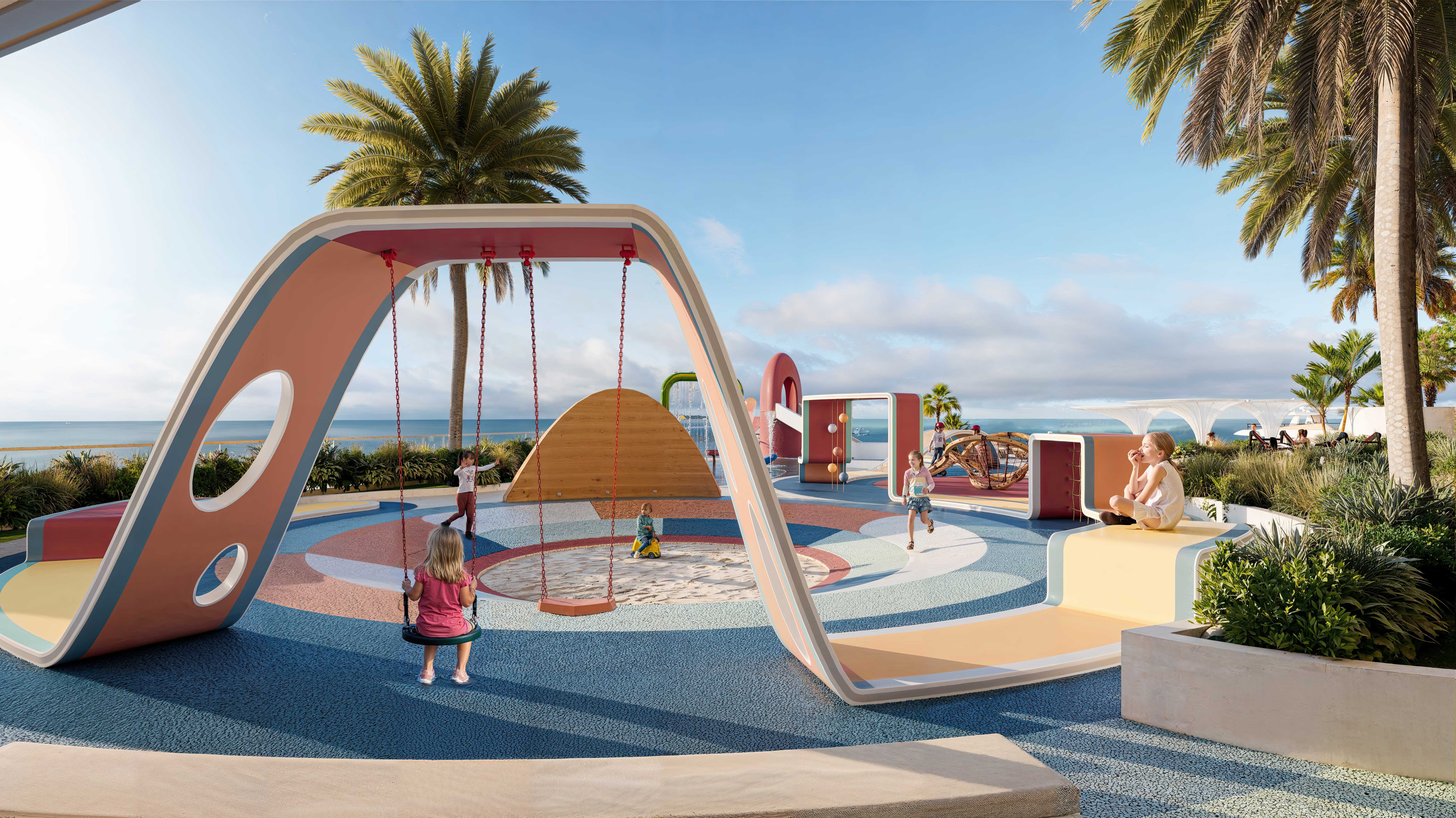 breeze, creating a distinctive silhouette on the skyline. The tower’s flowing lines and resort-inspired